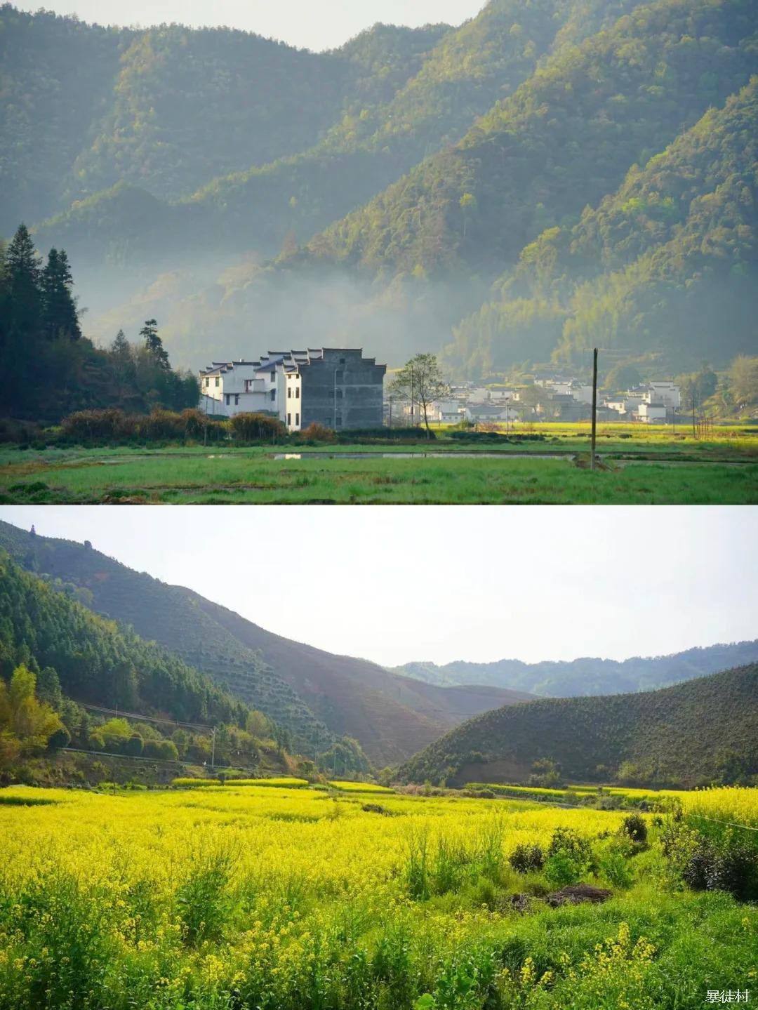 • 【烟雨江南氛围感拉满】雨天徒步休婺古道,云雾缠绕古村,油菜花海缀满山间,白墙灰瓦映着烟雨,随手一拍都是水墨大片,氛围感直接拉满。